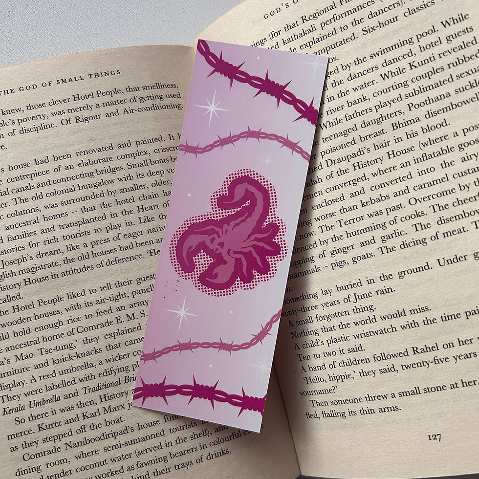 Pink barbed wire scorpion bookmark